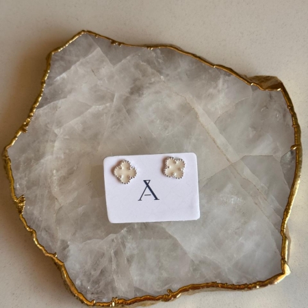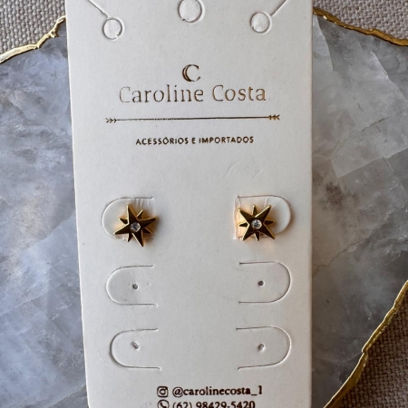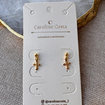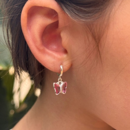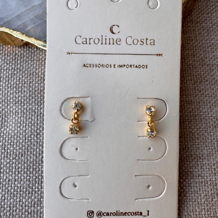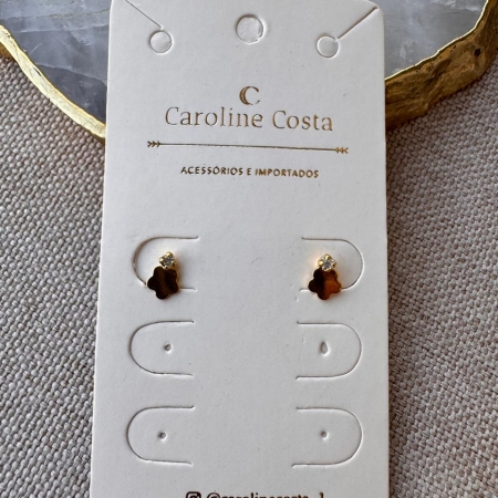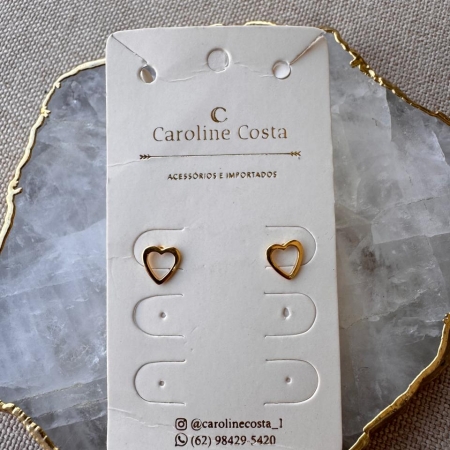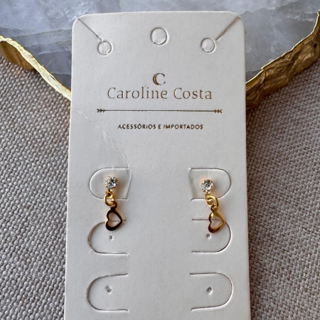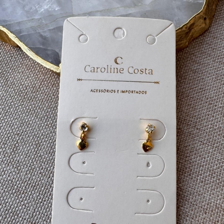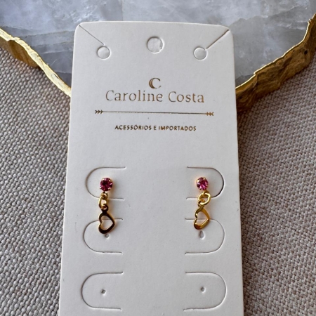 • Brinco Infantil Pedra Rosa e Coração Vazado