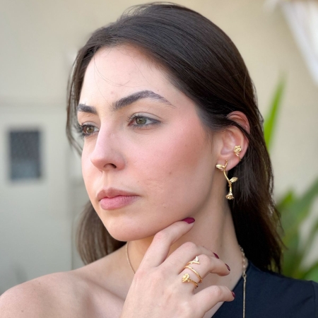 • Brinco Liso com Pedrinhas de Pérolas e Zircônia