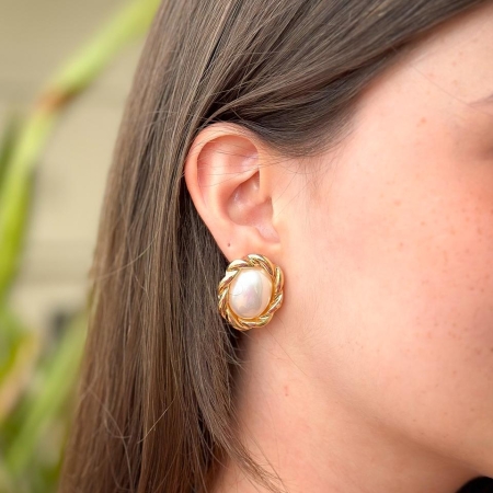 • Brinco Oval Madre Pérola – Banho Ouro 18k