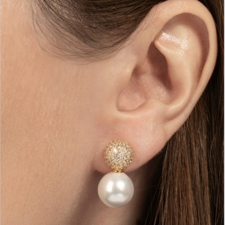 • Brinco Pérola Balls Cravejado