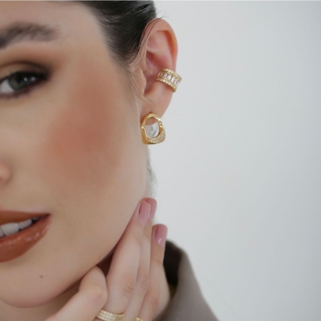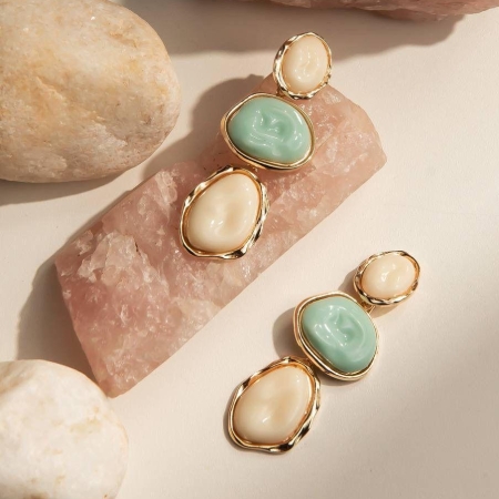 • Brinco Três Formas Orgânicas Pérola e Verde Menta