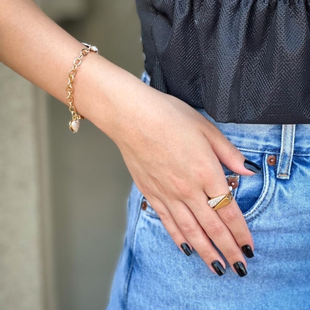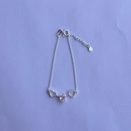 • Pulseira Feminina 2 Coração Torcido 1 Zircônia Prata 925