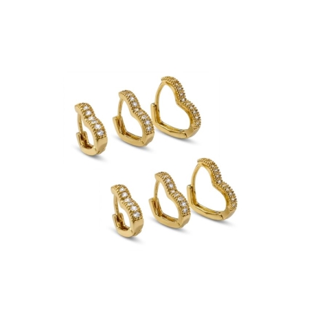 • Brinco Trio de Argolas Coração – Banho a Ouro 18k
