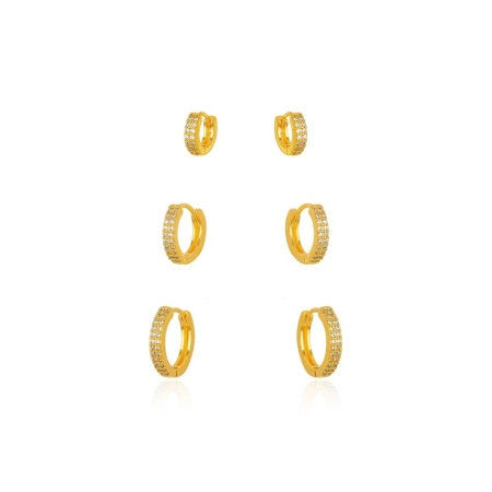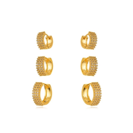 • Brinco Trio de Argola Micro Zirconia – Banho a Ouro 18k
