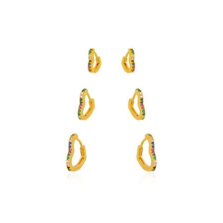 • Brinco Trio Coração Micro Zirconia Colorida – Banho a Ouro 18k