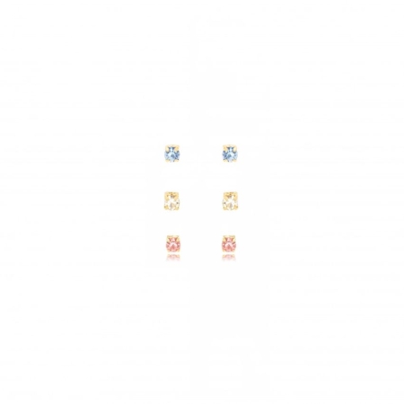 • Brinco Trio Ponto Strass Zirconia Colorida – Banho a Ouro 18k