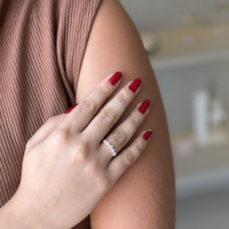 • Anel 5 Florzinhas Zircônia Delicado Prata 925
