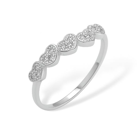 • Anel 5 Mini Corações Cravejados Prata 925 Numeração 15