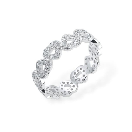 • Anel Aro Corações Vazados e Cravejados Prata 925 Numeração 17