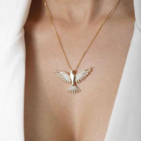 • Colar Espirito Santo Trabalhado Banho a ouro 18k