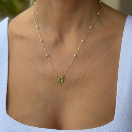 • Colar Pérola São Bento Religioso – Banho a Ouro 18k