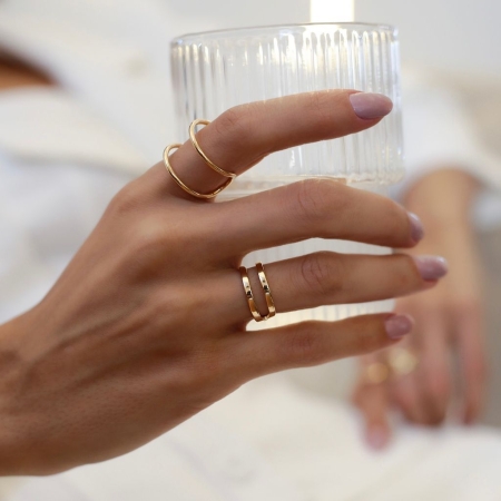 • Anel 5 Fios Cravejado e Liso Prata 925