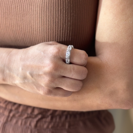 • Anel Inteiro De Baguetes na Prata 925 Banhado no Ródio Numeração 17