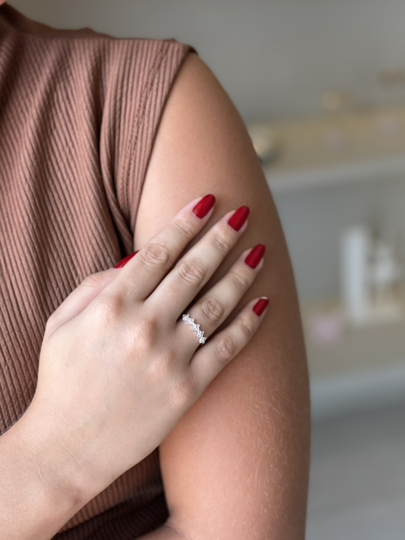 Anel 5 Florzinhas Zircônia Delicado Prata 925