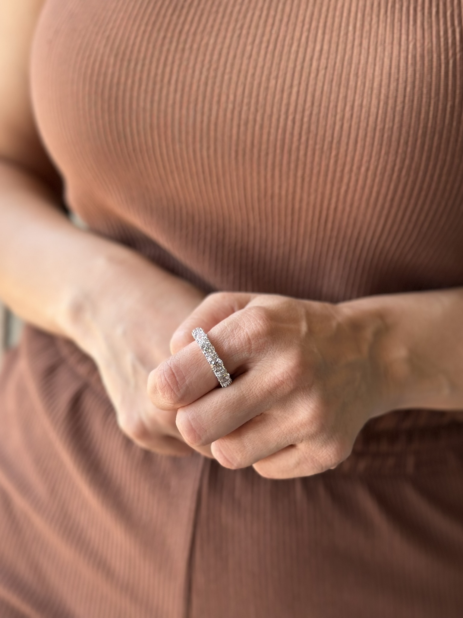 Anel Aliança Inteira Pontos de Luz 5MM Prata 925 Banhado No Ródio