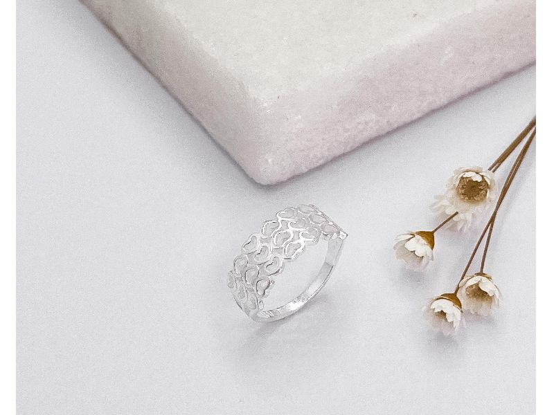 Anel Corações Vazado com Detalhes Prata 925