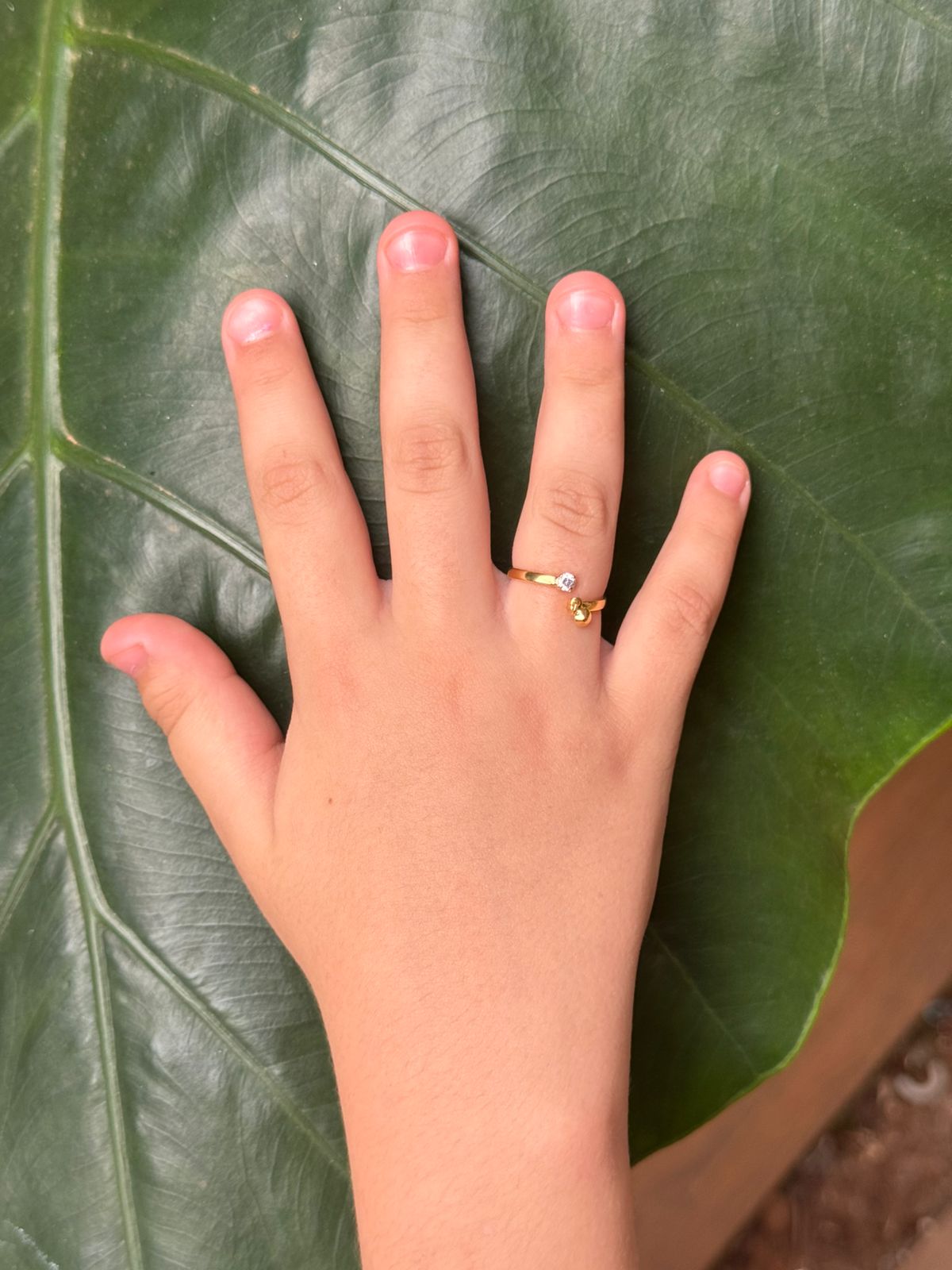 Anel Infantil com 2 Pedras de Zircônia Dourado