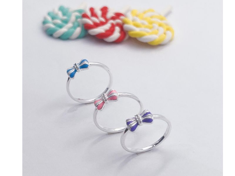 Anel Infantil Laço Rosa Prata 925 Numeração 10