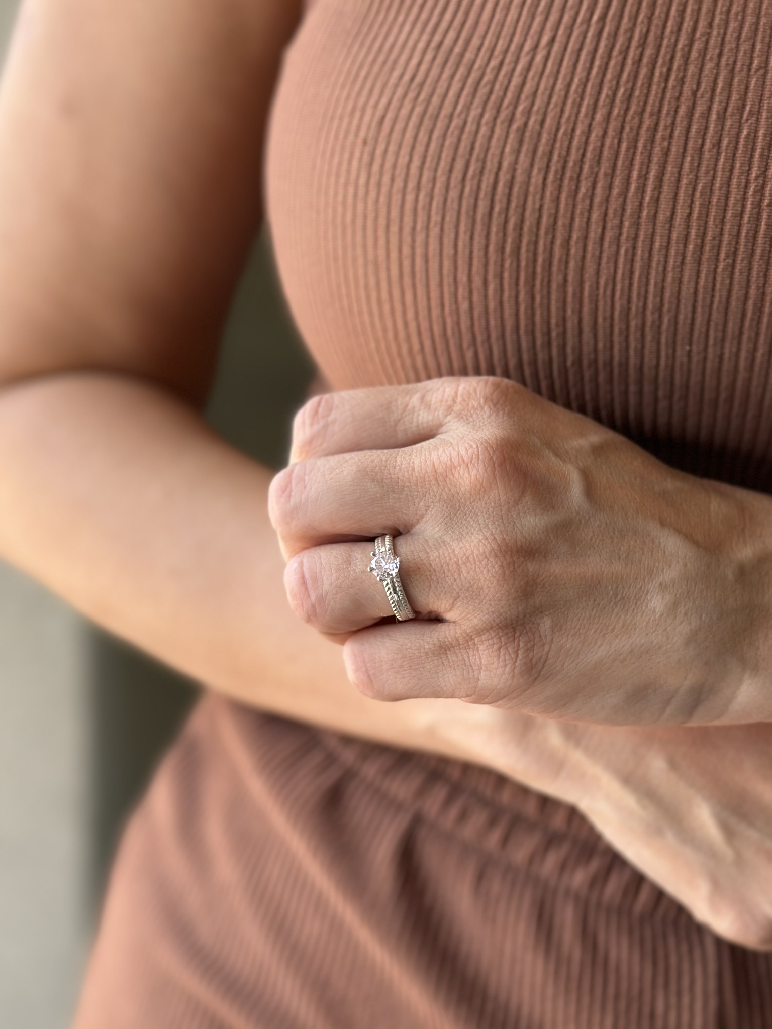 Anel Solitário 8MM Com Grifas Cravejado Prata 925 Banhado no Ródio