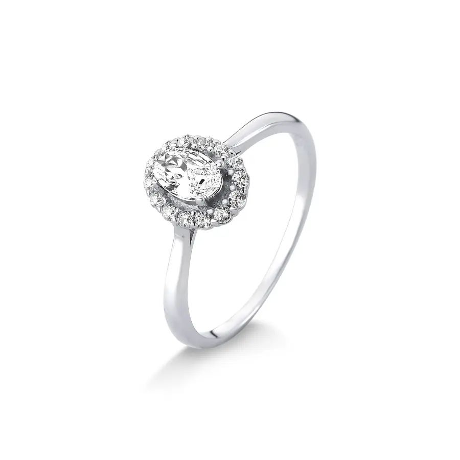 Anel Oval Cravejado Prata 925 Banhado No Ródio Numeração 14