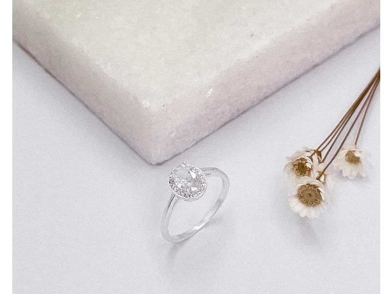 Anel Oval Cravejado Prata 925 Numeração 16