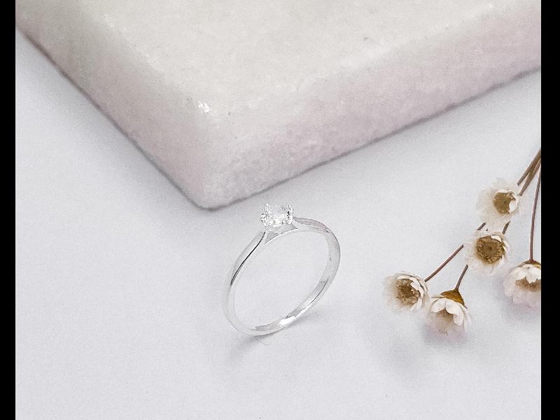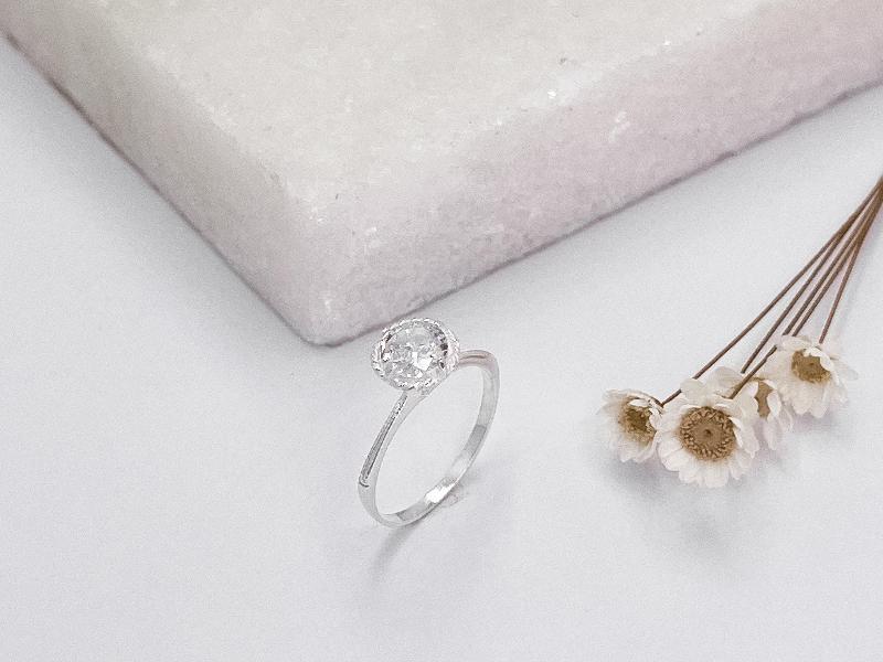 Anel Solitário Laterais Cravejadas Prata 925 Numeração 16