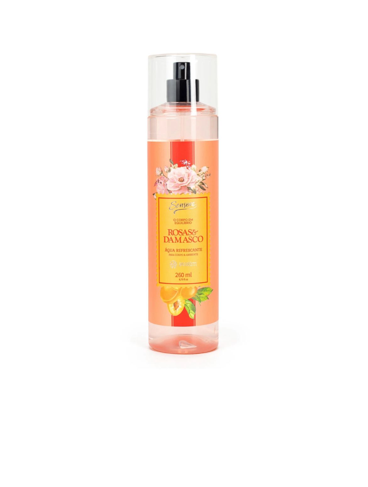A Água Refrescante apresenta a doçura de rosas e damasco para perfumar corpo e ambiente com frescor e elegância.