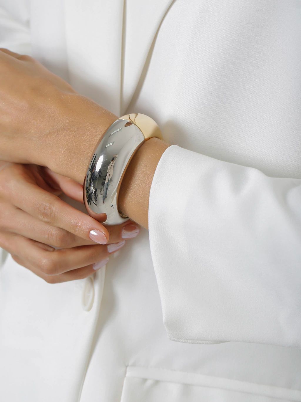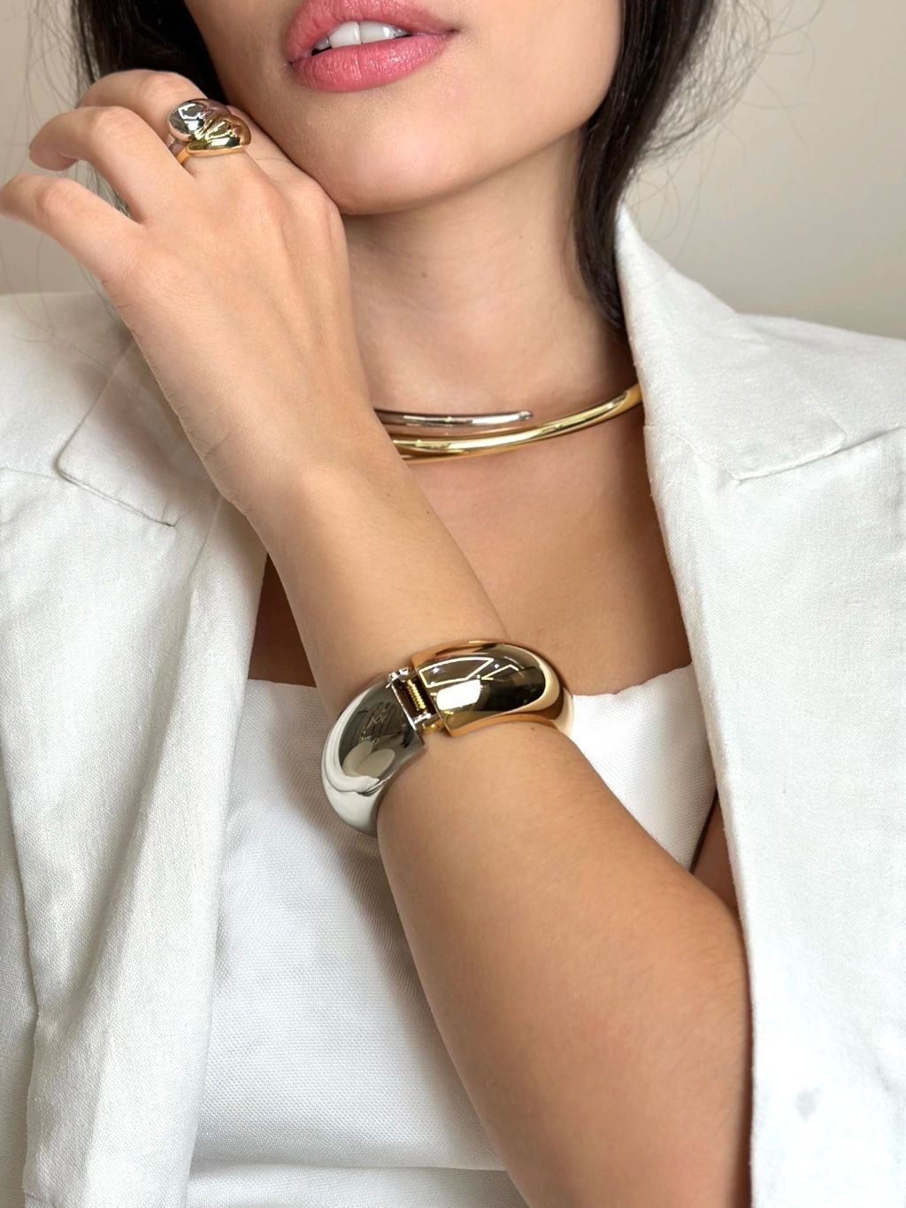 Bracelete Maxi Bold – Banho Bicolor a ouro 18k e Ródio – Caroline Costa