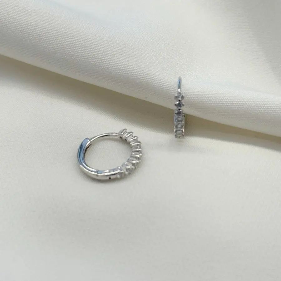 Brinco Argola Click Prata 925 Banhado no Ródio 13MM