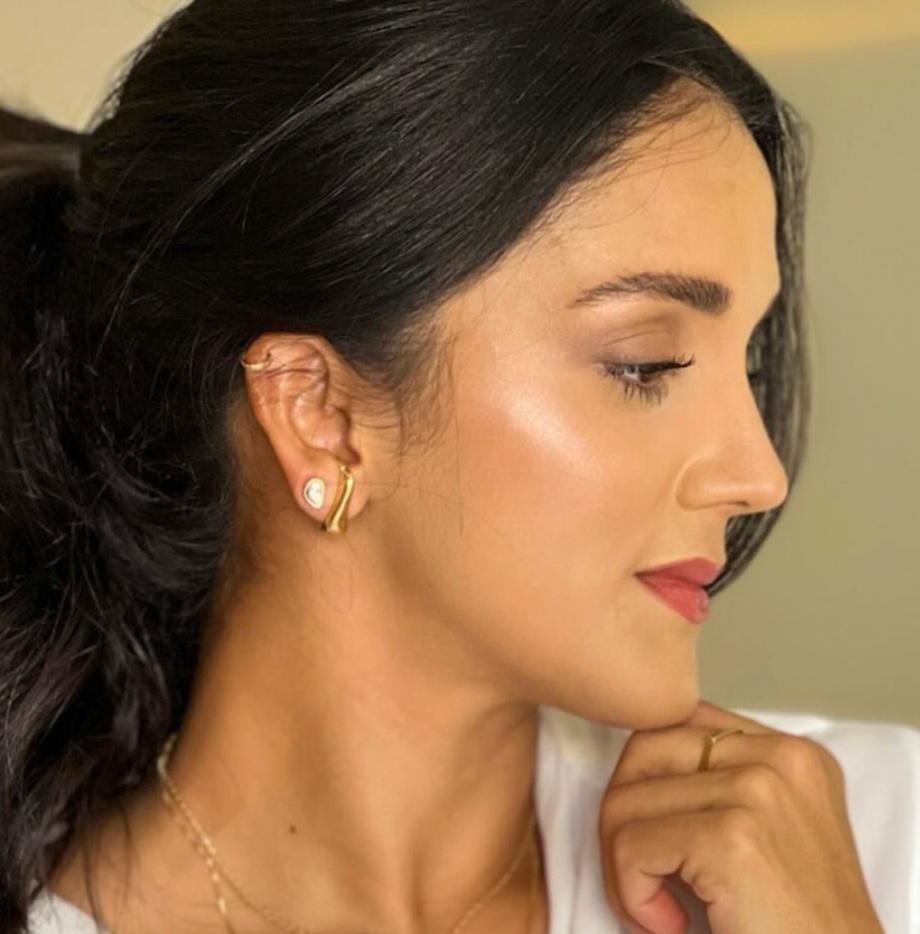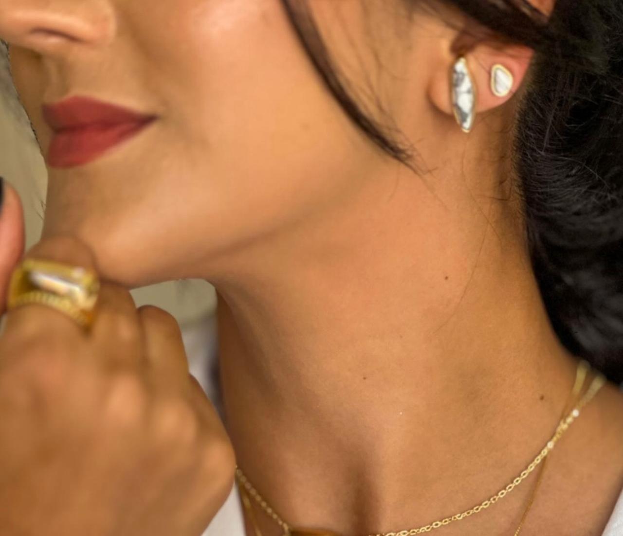 Brinco Dual EarHook Howlita Branca – Caroline Costa