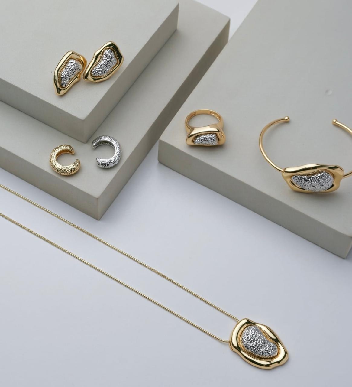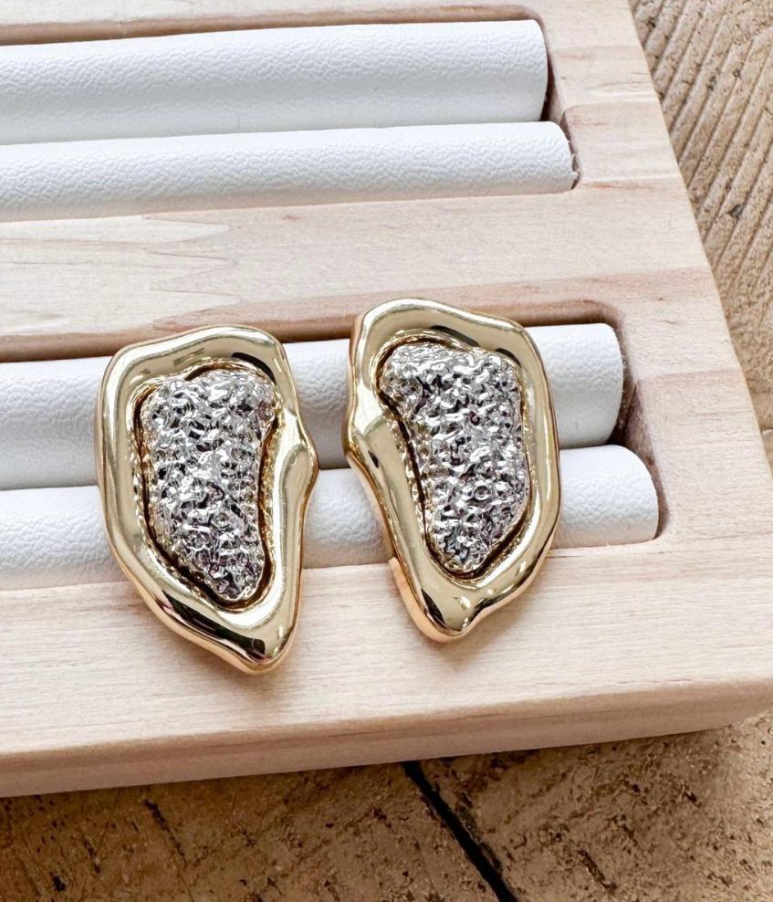 Um design moderno que une delicadeza e personalidade. Este Brinco possui uma base em formato orgânico com acabamento polido e martelado , criando um efeito sofisticado e atual .