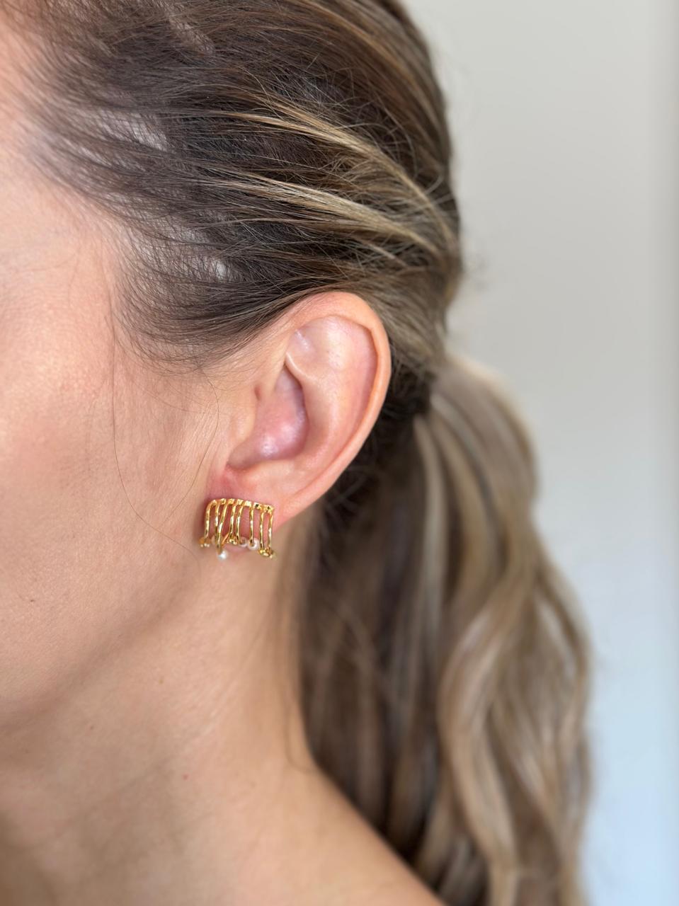 Brinco Liso com Pedrinhas de Pérolas e Zircônia – Caroline Costa