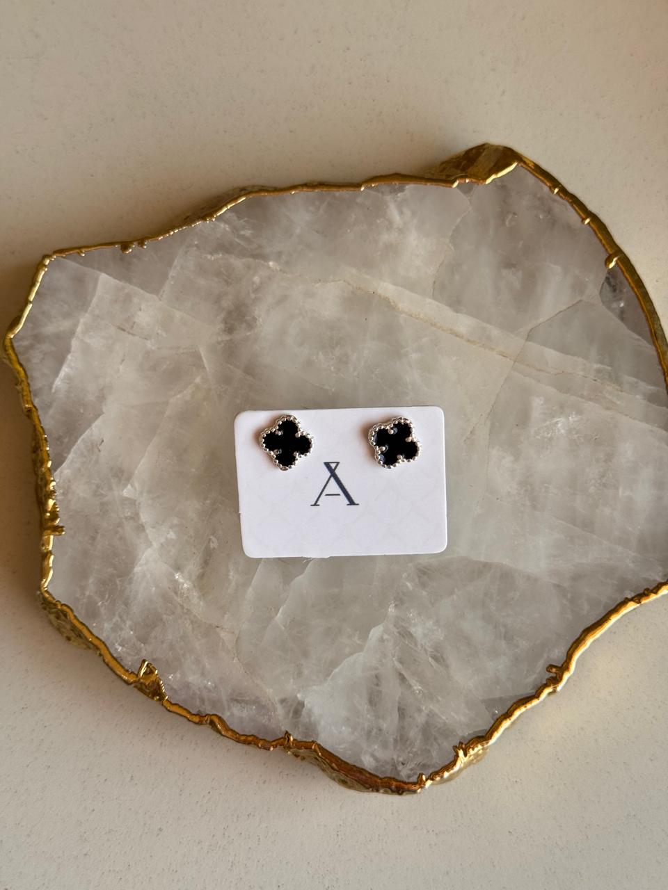 Brinco Mini Trevo Preto Prata 925 – Caroline Costa