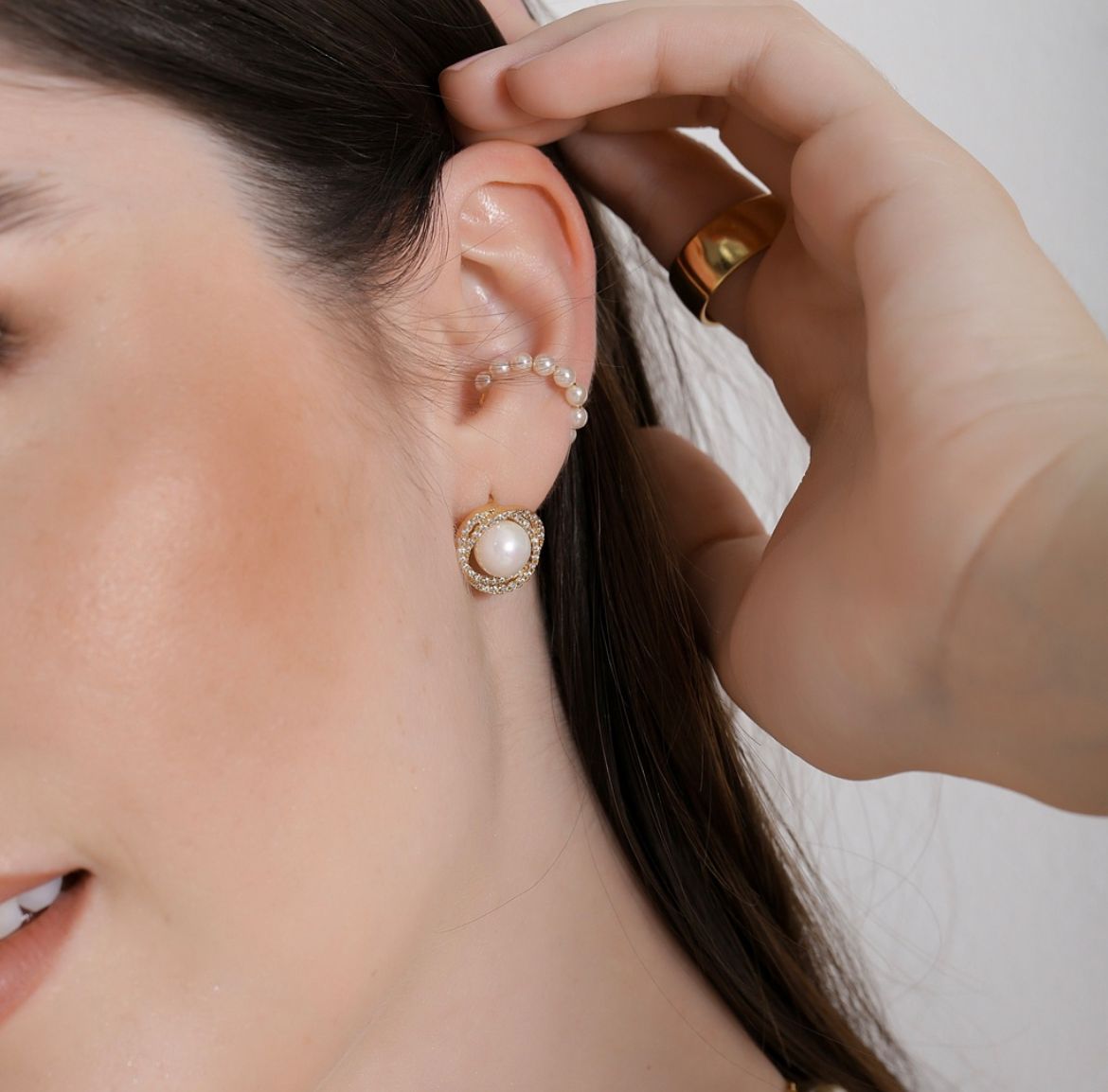 Brinco Pérola Shell Com Zircônia G – Caroline Costa