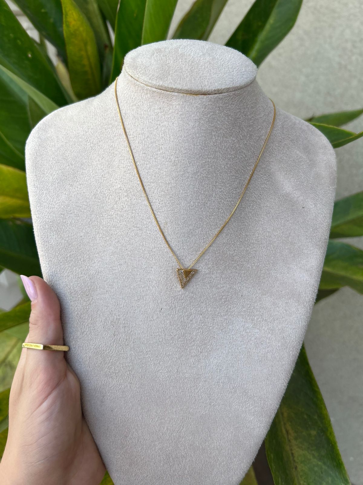 Colar Dourado Triangulo Cravejado – Caroline Costa