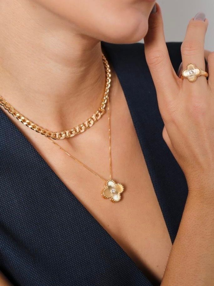 Colar Trevo Duo Com Zircônia