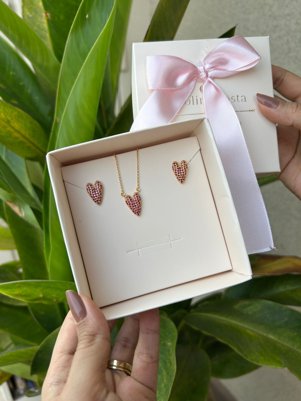 Conjunto Coração Esticadinho Zirconia