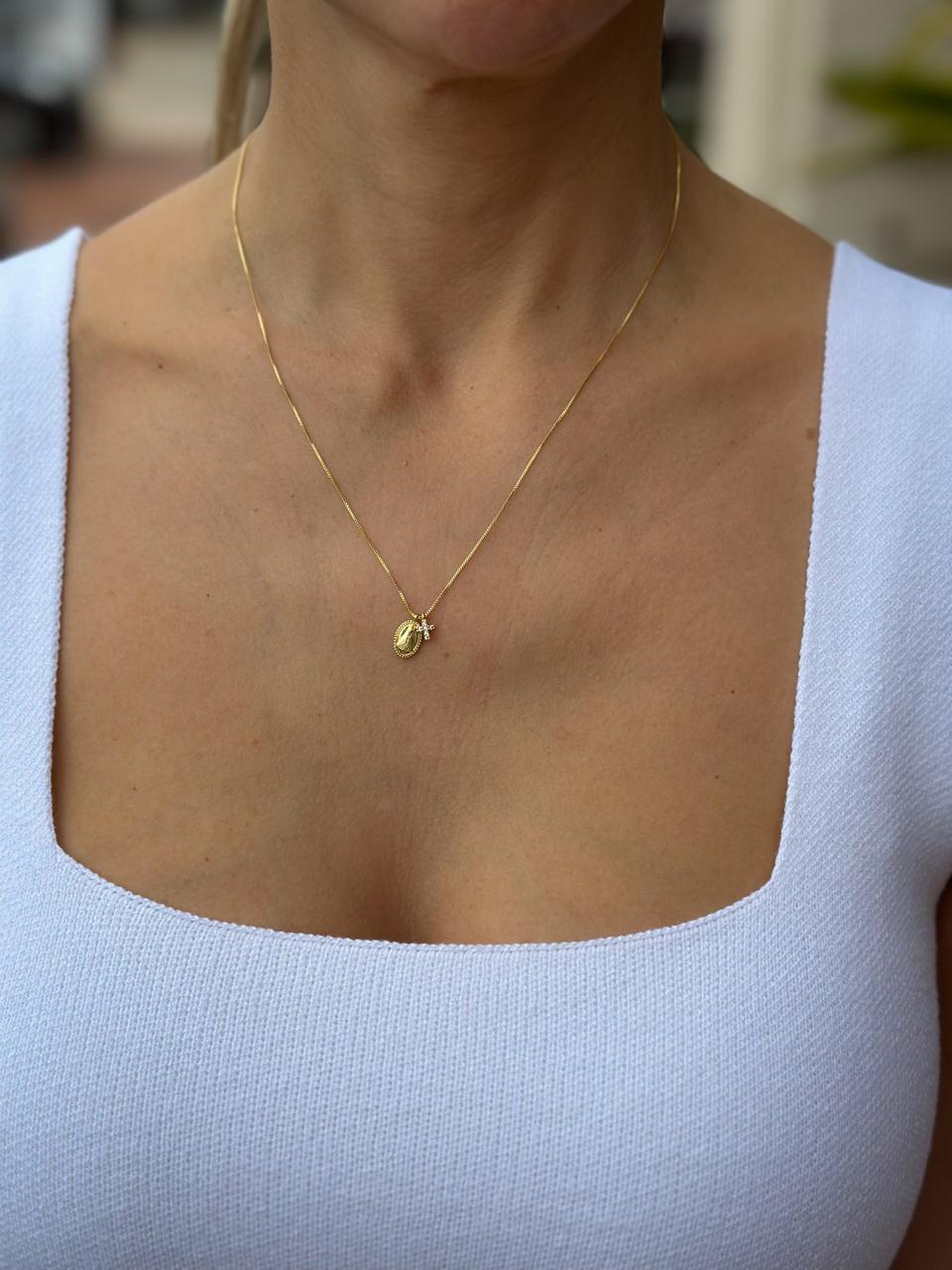 Esse colar é uma peça delicada e cheia de significado, perfeito para quem gosta de unir fé e elegância no dia a dia.