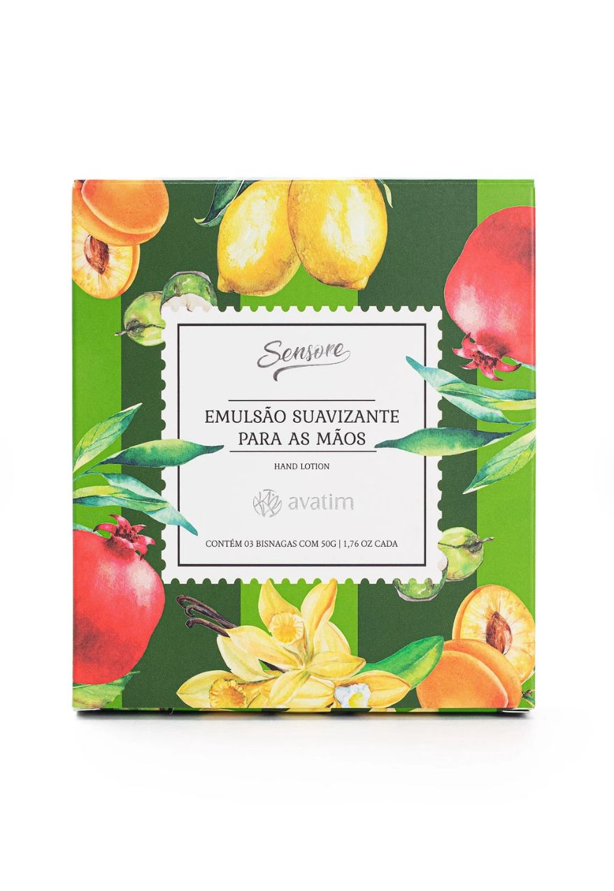 O Kit Sensore Emulsão Suavizante para as Mãos conta com duas opções de caixas. O kit reúne três cremes para as mãos com as fragrâncias já conhecidas da linha.