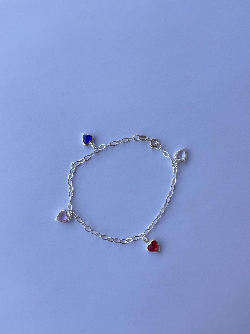 Pulseira Feminina 4 Zircônias Coração Prata 925