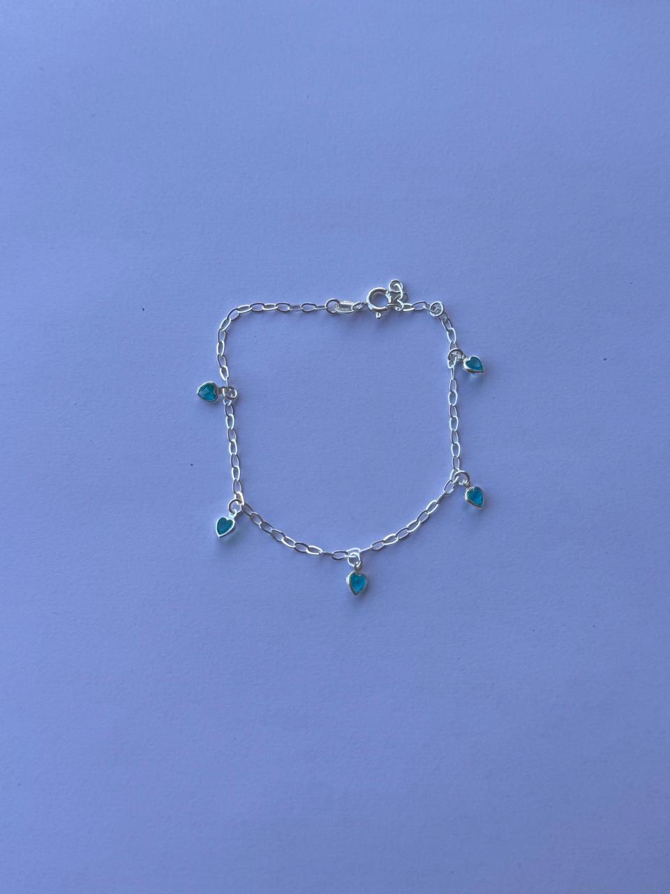 Pulseira Feminina Corações Azul Turquesa Prata 925