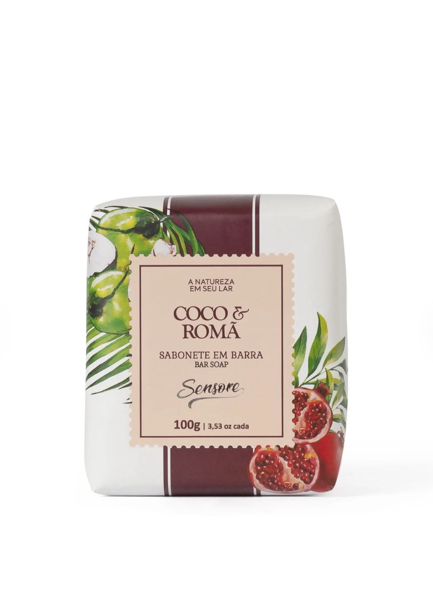 Sabonete em Barra - Coco e Romã, contendo 3 unidades de 35g cada